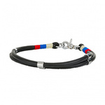 Barry King Obroża linowa wstawki niebieskie/czerwone czarna S: 46cm/6mm